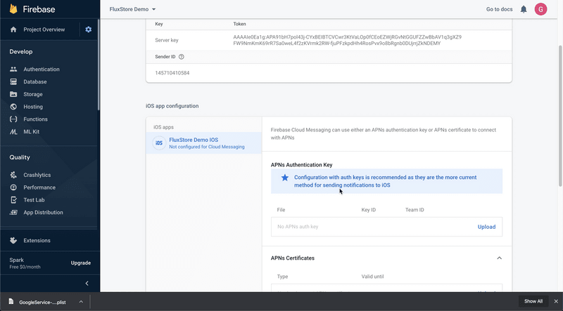 Precondition: refer to "1. iOS" to create an IOS application on Firebase.